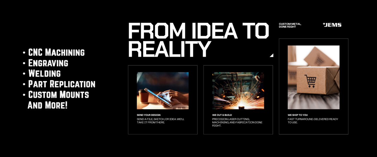 At Jensen Manufacturing Solutions, every project begins with a commitment to precision, durability, and creativity. From custom fabrication and laser cutting to heat press work, Cerakote finishes, and more, we transform ideas into high quality products built to last. Whatever your vision, Jems brings it to life with craftsmanship, care, and attention to detail.